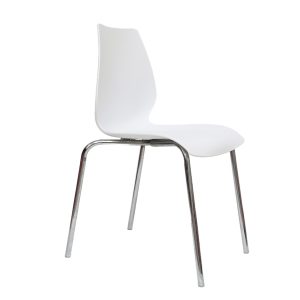 Our dining chair is crafted with a one-piece PP seat and electroplated metal legs: